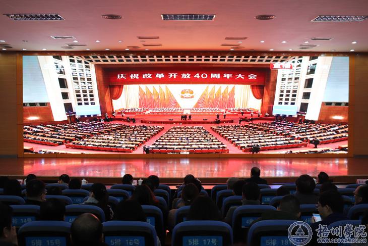 12月18日上午,学校在明理楼一楼学术报告厅组织师生员工代表集体收看庆祝改革开放40周年大会电视直播。学校领导杨奔、曹迎、玉振明、梁业华、麻新纯,全体中层干部、科级干部、各部门工作人员,各二级学院教师代表、学生代表共500余人参加。