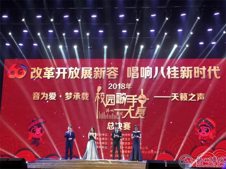 12月16日晚,以“改革开放展新容、唱响八桂新时代”为主题的“音为爱·梦承载—天籁之声”校园歌手大赛总决赛在体育馆三楼举行。以歌声歌颂中国改革开放40年来的新变化,唱响广西壮族自治区成立60年来的新成果,以饱满的热情共同迎接新时代。学校党委副书记曹迎与师生代表共5000多人到现场观看,场外直播平台有9000多人在线观看。