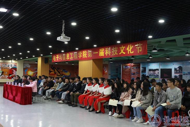12月17日晚,电子与信息工程学院第一届科技文化节闭幕式暨颁奖典礼在大学生发展中心路演厅落下帷幕。电子与信息工程学院党总支书记邹木春、电子与信息工程学院副院长候义锋,师生代表出席了此次活动。