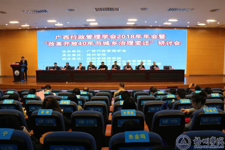 12月22日,广西行政管理学会2018年年会暨“改革开放40年与城乡治理变迁”研讨会在我校召开。来自区内外高校、杂志社、企业等单位的近100名行政管理学专家学者参加了会议。