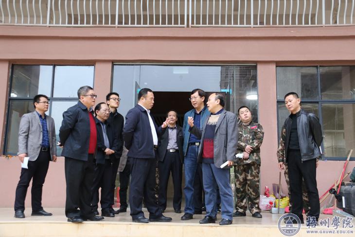 12月25日,梧州市副市长、公安局长匡伯彪来校调研,协调推进我校教职工限价商品房项目建设,并对学校明理楼、图书馆、体育馆等主要建筑的消防安全工作作指导。