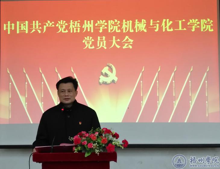 12月29日,中国共产党梧州学院机械与化工学院党员大会在明理楼南楼603教室隆重召开,108名党员参加了大会。学校党委常委、组织部(统战部)部长黄健武同志到场指导。
