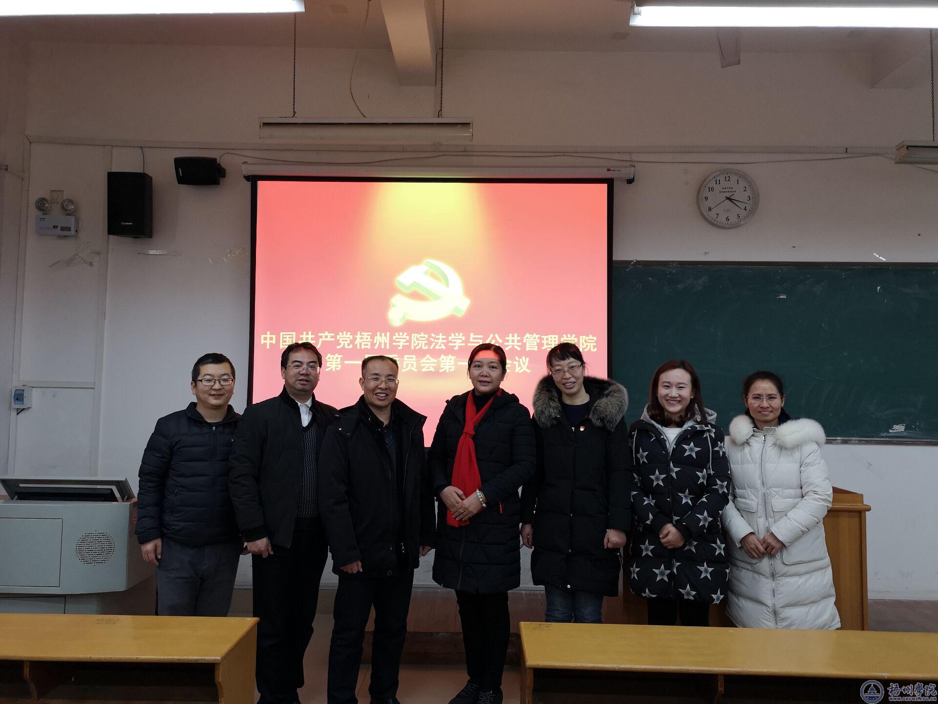 12月29日下午,中共梧州学院法学与公共管理学院严格按照《中国共产党章程》、《中国共产党基层组织选举工作暂行条例》和有关换届选举相关规定,在明理楼M201教室,召开全体党员大会,选举产生了第一届党总支部委员会委员。学校党委组织部副部长廖壮欢同志莅临现场指导,会议由肖义同志主持。