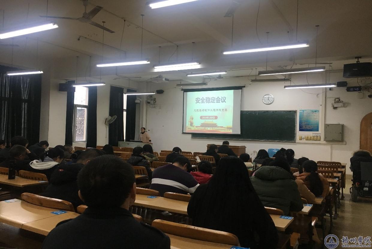 1月8日,大数据与软件工程学院在S201召开安全稳定工作会议,传达上级有关会议精神,结合大数据与软件工程学院的实际情况,对我院今后一段时间的安全稳定工作进行了部署。会议由党委书记吴燕端主持,学院领导黄宏本、贺杰出席会议,学院全体教师参加会议。
