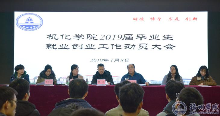 1月8日,机化学院2019届毕业生就业创业工作动员大会在大学生发展中心路演大厅举行,机化学院院长钟山,机械与化工学院党委副书记、纪委书记许玉婷,学生工作处就业办主任班华意,机化学院全体辅导员以及2019届全体毕业生参加了本次大会。