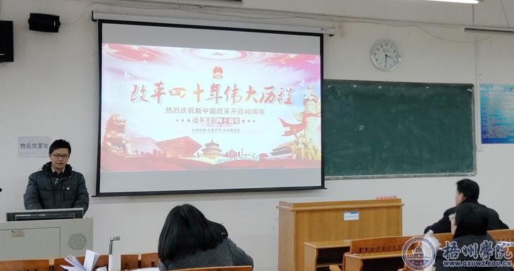 课堂上,卢桂吉同志作专题为《改革四十年伟大历程》的报告。主要从十一届三中全会的三大意义、改革开放40年的历史成就,40年的历史经验;市场经济体质的建立和完善;开放自己,惠及世界加入世界贸易组织;全面推进改革开放的新步伐等四个部分讲解中国在改革开放进程中的“中国式奇迹”。