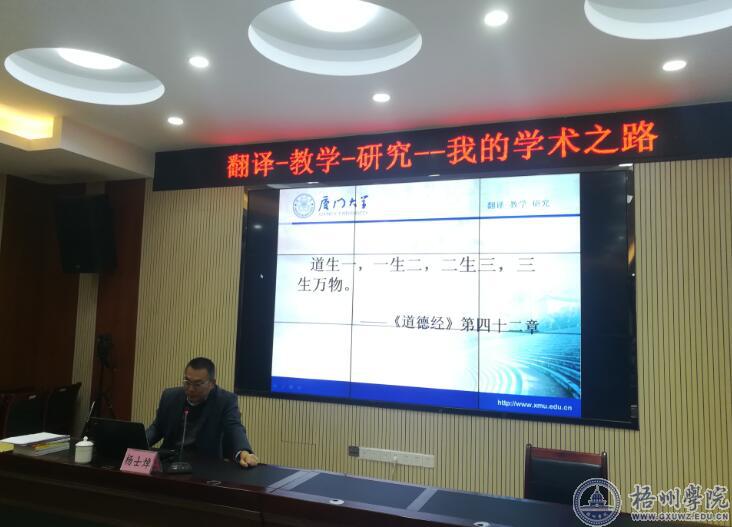 在题为《翻译-教学-研究——我的学术之路》的讲座中,杨教授用深入浅出的话语,结合自己在教学和翻译实践中的经验来给老师们就如何进行国家级和省部级社科基金项目的申报进行讲解,并对几份国家社科基金项目申报书进行了现场点评。讲座气氛活跃,老师们都深受鼓舞和启发。讲座结束后,杨教授向外国语学院老师赠送了他的翻译专著。