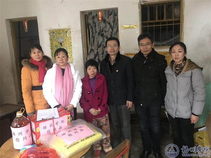 王振宇副院长仔细询问了贫困户的家庭状况,了解到何燕芳肢体残疾,老人常年卧病在床,媳妇产后抑郁,一家五口,靠儿子打散工维持,王振宇表示今后将组织学院党员经常来看望他们。马克思主义学院教工党支部书记李健敏、团委书记冼春妮、教师党员李建平一同参加了慰问活动。
