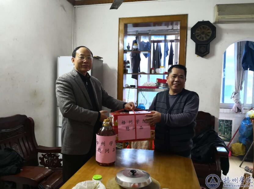 1月11日上午,文传学院党总支书记毛廷贵和周才芳老师,在“双报到”单位——东山社区黄美宁副主任的陪同下,走访慰问困难户李广宁,了解他们的家庭生活和身体情况,并为他们送去了食用油、面条等生活必需品。