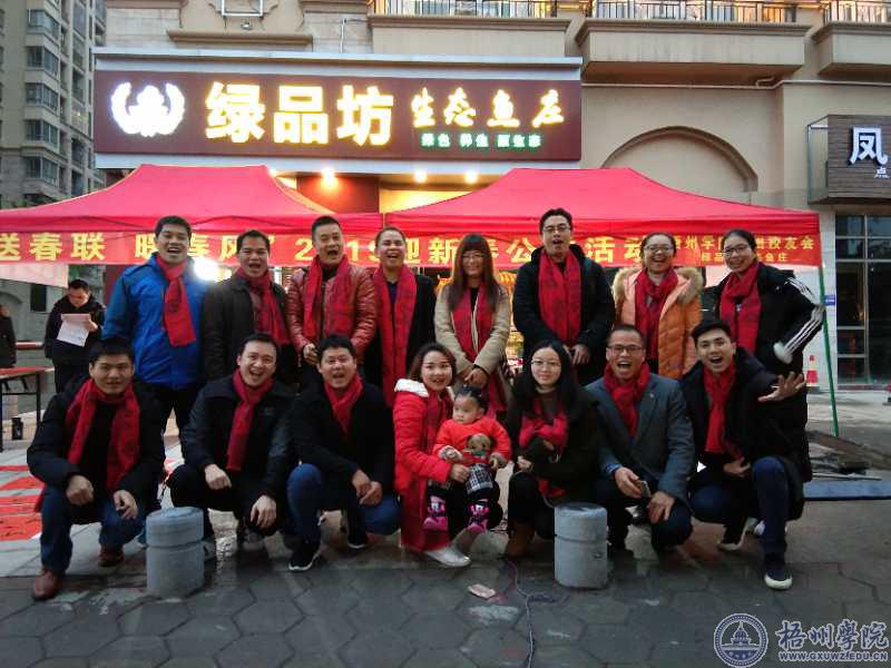 1月12日下午,梧州学院柳州校友会“送春联,暖春风”2019迎新公益活动在柳州市柳南区举行,有近40名校友参加了此次公益活动。大家齐聚一堂,叙情谊,话发展,讲分享,做公益,迎接2019年的到来。
