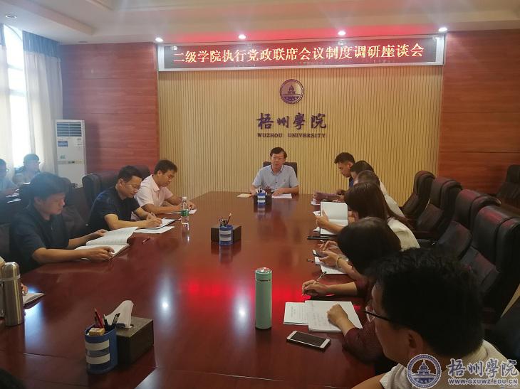 严格执行《梧州学院2018年党建工作目标责任书》《中共梧州学院委员会党建工作重点任务清单》,形成了层层抓落实的工作责任体系。指导完善二级院系议事决策规则28项,二级学院的党政决策工作更加规范化、制度化、科学化。