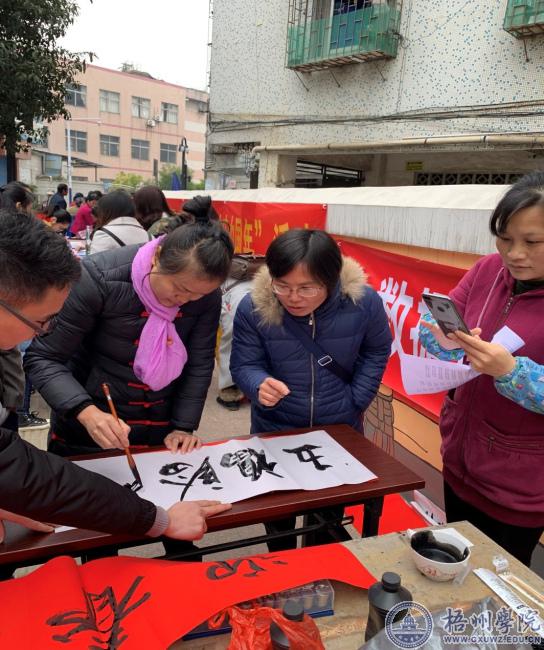 上午九时,教师党员和学生党员代表准时出现在富民社区开展社区服务活动。大数据与软件工程学院携手电子与信息工程学院精心准备了50条灯谜,将党的基本知识转化为鲜活有趣的谜面,融知识性、趣味性、教育性于一体,使党的知识在轻松活泼的氛围中潜移默化、深入人心,让社区群众更进一步地了解党史、提高思想认识。并且特邀黄石莲老师在富民社区内设点为附近的居民免费写春联、送祝福,引来众多社区群众争先恐后地选择自己家的春联内容,不到一小时,对联就铺满了一地。社区居民手捧着喜庆的春联,脸上洋溢着掩饰不住的喜悦之情。