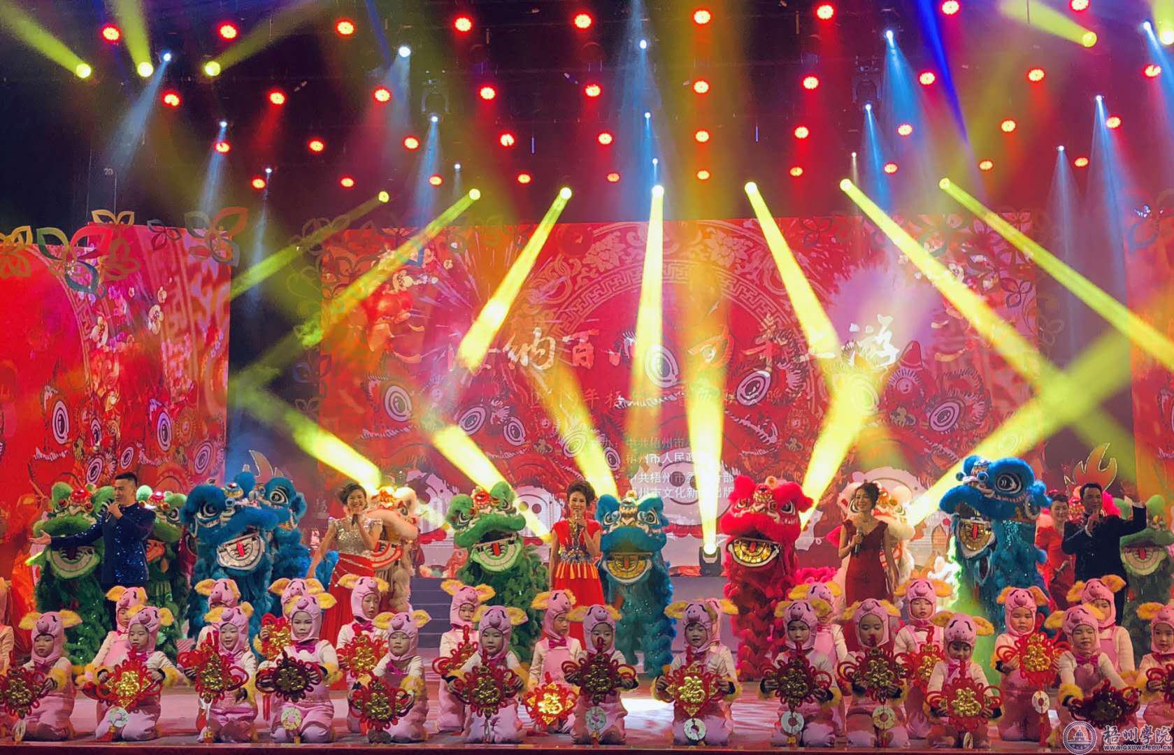 1月23日晚,由中共梧州市委员会、梧州市人民政府主办,中共梧州市委宣传部、梧州市文化新闻出版广电局承办的“海纳百川 力争上游”2019年梧州市春节联欢晚会在梧州市文化中心上演。