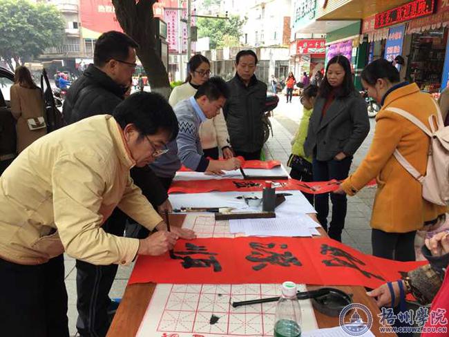 近日,教师教育学院党委组织在书法方面有专长的陈启义、陈柏全等党员教师走进富和社区,义务为社区居民书写春联。在近三个小时的时间里共书写“福”字及春联近两百张。