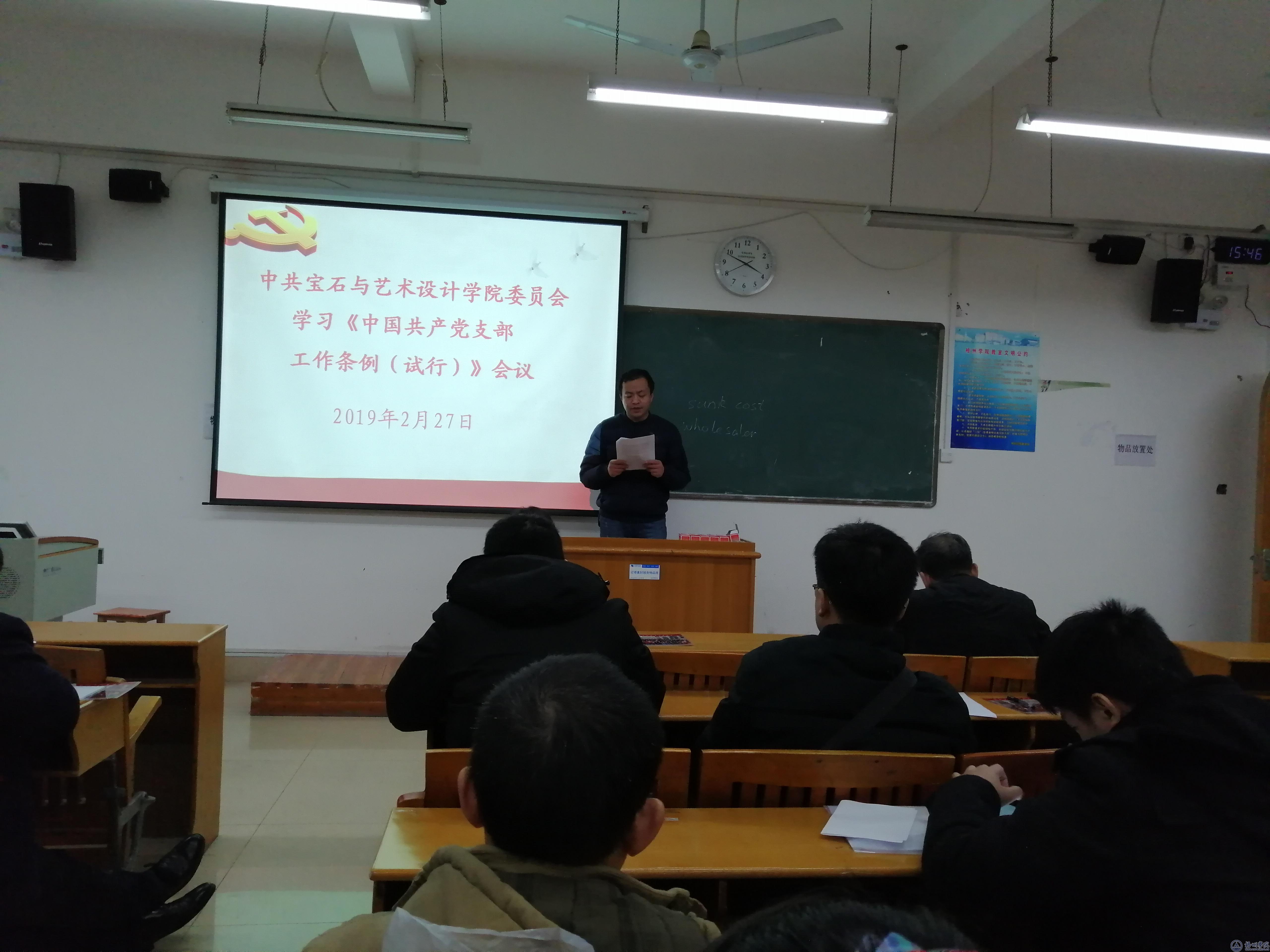 2月27日,宝石与艺术设计学院教工党支部在M302召开党员学习教育活动,教工支部全体党员参加了会议。