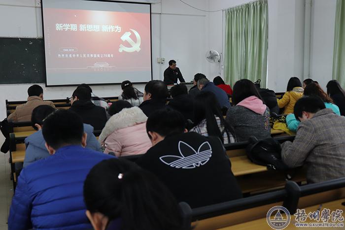 为深入学习贯彻习近平新时代中国特色社会主义思想和党的十九大精神,教师教育学院党委组织全体党员在师范校区C504教室举办新学期专题党课,党课由党委书记梁文忠主讲。