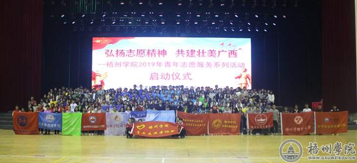 3月4日下午,由校团委主办,各二级学院团委、校级团学组织承办的“弘扬志愿精神 共建壮美广西”—-梧州学院2019年青年志愿服务系列活动启动仪式在学校体育馆三楼举行。