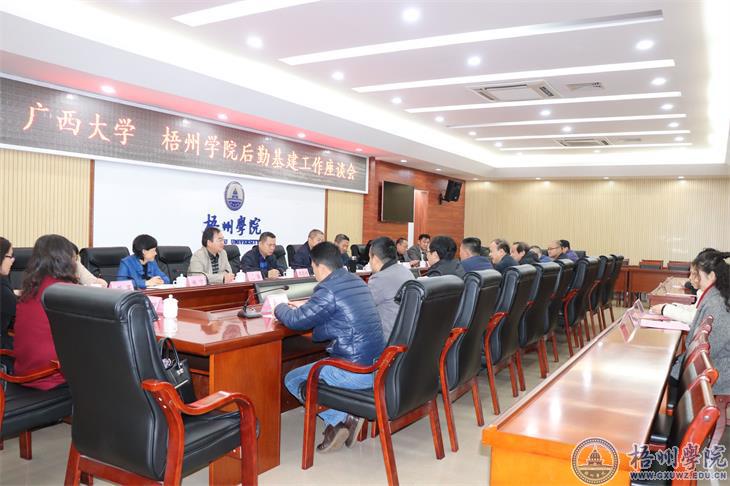 3月8日下午,广西大学校长助理、后勤管理处处长刘向率后勤管理处、规划基建处一行12人到我校考察交流。我校党委书记唐平秋、副校长玉振明会见了刘向一行,并在明理楼八楼第一会议室召开广西大学、梧州学院后勤基建工作座谈会,我校后勤基建处领导班子及学校对口科室工作人员参加会议。副校长玉振明出席座谈会并主持会议。