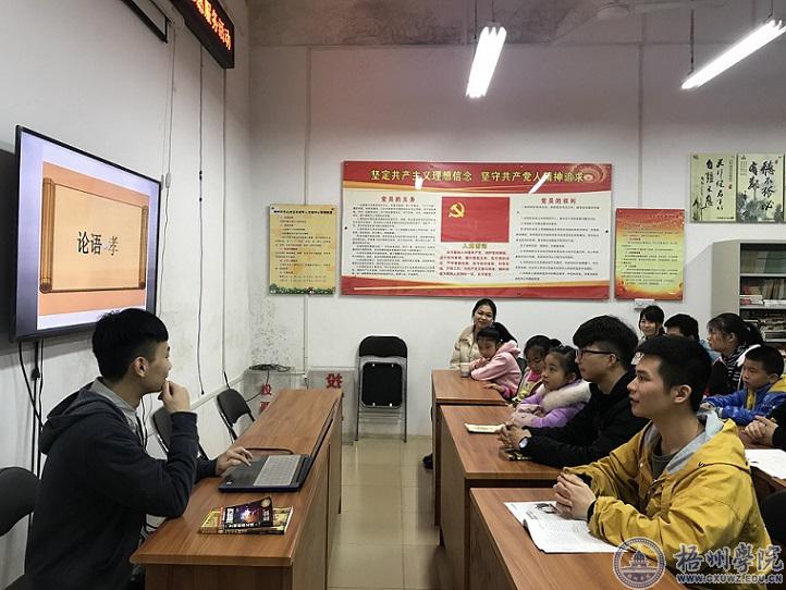 “周末公益兴趣班”开班仪式结束后,党员、志愿者们开始对学生进行一对一课业辅导,志愿者还向孩子们讲授以“诵国学经典,做有德少年”为主题的课程内容,让孩子们从小接受优秀传统文化的熏陶。