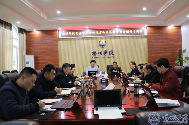 会议还传达了2019年全区高校党的建设工作会议、全区教育工作会议精神。