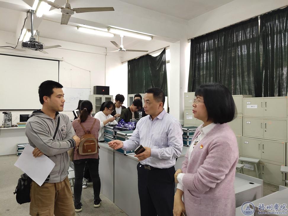 为进一步推进平安校园建设,杜绝校园安全隐患,确保学校安全稳定,切实做好校园安全工作。2019年3月13日下午电信学院党总支书记邹木春、党总支副书记副院长郭慧带队对本学院的学生宿舍、实验室进行安全检查。