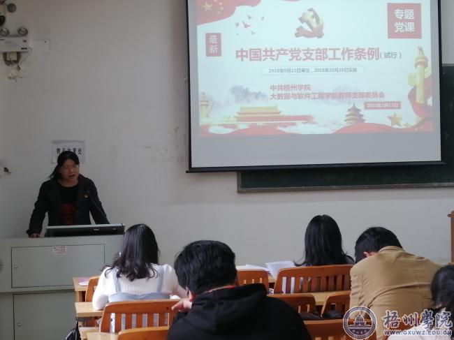 会议由教师党支部书记苏芳同志主持,会议上全体党员同志集中学习了《中国共产党纪律处分条例》,明确《条例》的重要作用,其中重点提及纪律处分条例新增部分,希望党员同志认真学习,加强党支部标准化规范化建设。随后学习了《中国共产党支部工作条例》、习近平总书记“建设壮美广西 共圆复兴梦想”重要题词精神。支部书记鼓励支部党员在平时的空闲时间,可以继续通过学习强国APP、“八桂先锋”网站等平台开展自学,将党员的经常性教育工作落至实际工作中去,不断提高个人政治素养,促进支部党组织凝聚力不断提升。