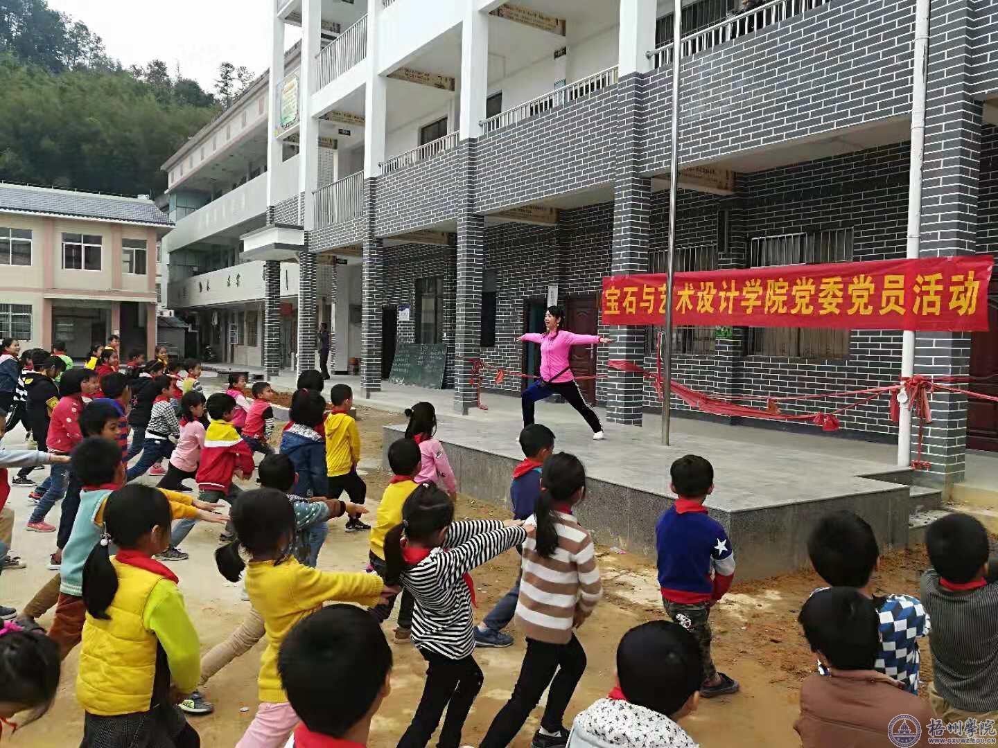 活动当天,学院师生党员和青年志愿者团队充分发挥专业优势,积极开展书法、美术现场授课。学院党委书记钟海明亲自为全校小学生上了一节生动活泼的体育课。据悉,因场地、师资等原因,罗应小学美术、体育教育发展比较迟缓。宝石与艺术设计学院在该校创办的阳光书画屋及学院师生实地支教进一步推动了该校美术、体育教育的发展。