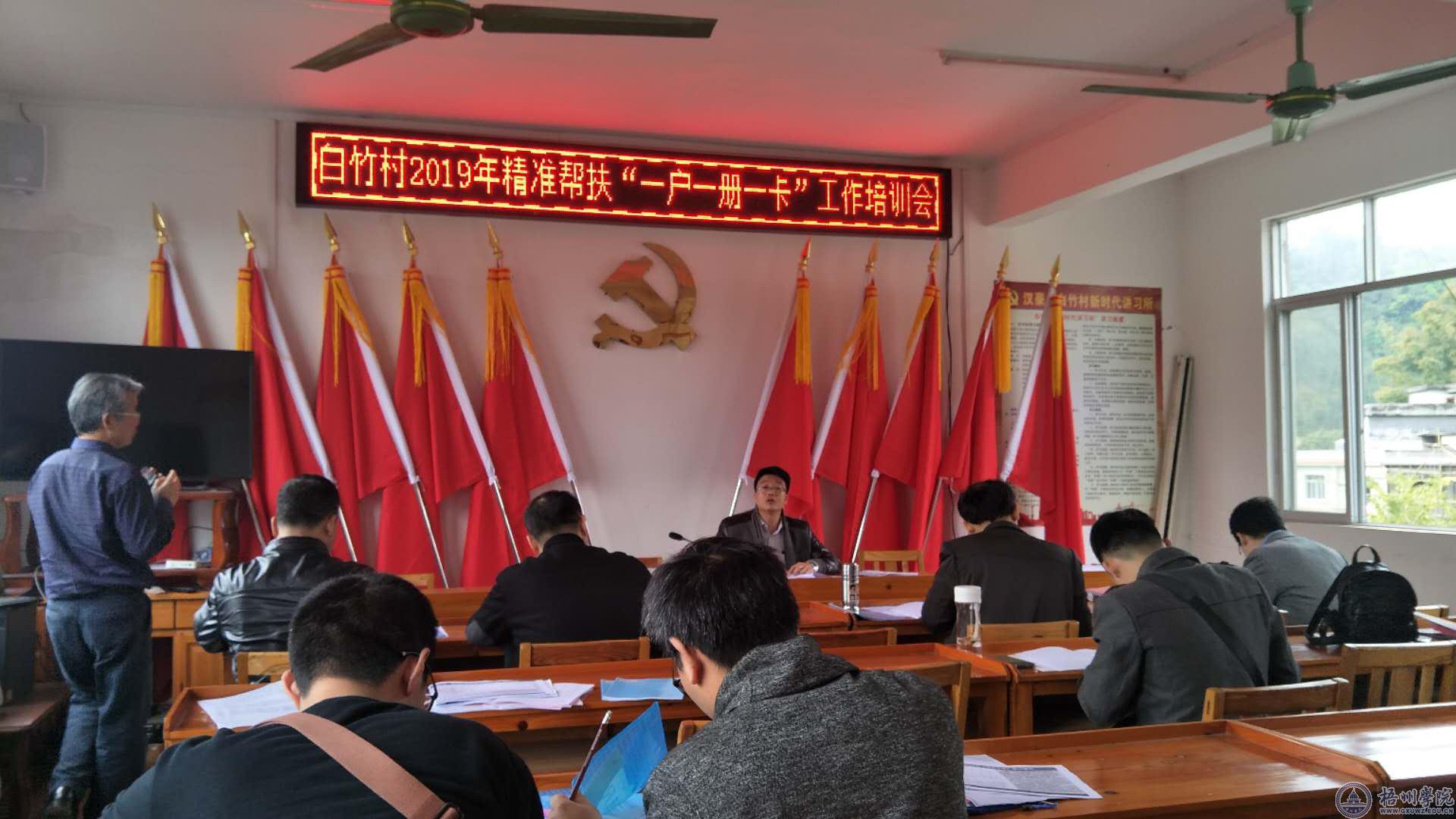 为贯彻学校党委关于扶贫攻坚工作的安排部署,扎实推进精准扶贫工作,根据2019年度全区精准帮扶“一户一册一卡”工作会议的要求,3月19日,我校组织11名帮扶干部到蒙山县白竹村开展精准帮扶“一户一册一卡”工作。