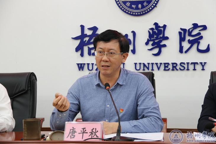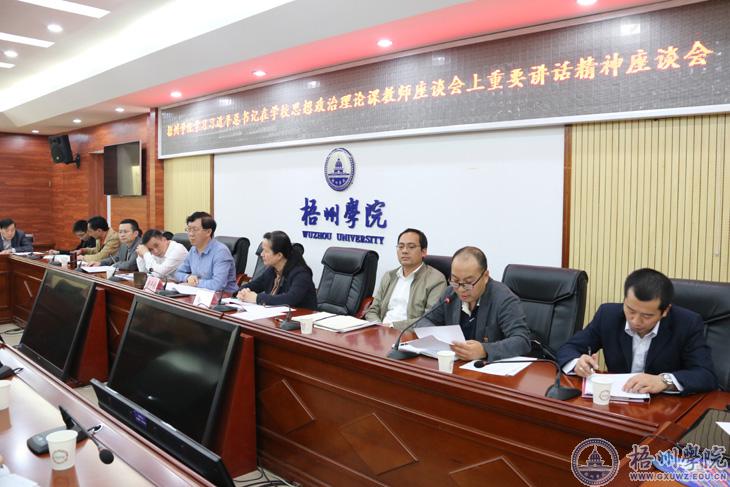 3月22日,梧州学院在明理楼第一会议室召开座谈会,深入学习习近平总书记在学校思想政治理论课教师座谈会上的重要讲话精神。校党委书记唐平秋、副书记曹迎出席座谈会。学校党委宣传部、学生工作部(处)、校团委科级以上干部;教务处处级干部;马克思主义学院全体教师参加座谈会。曹迎副书记主持座谈会。