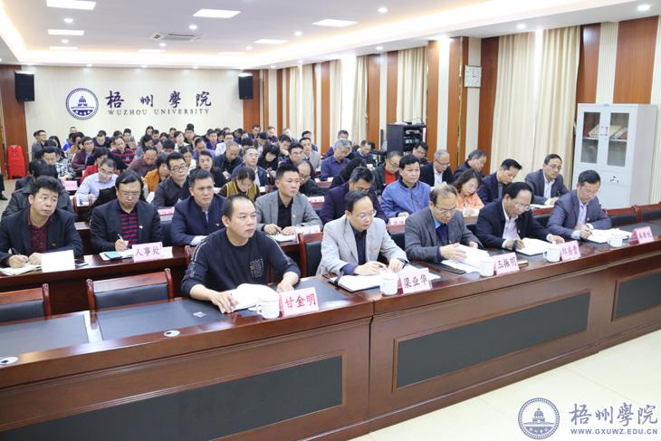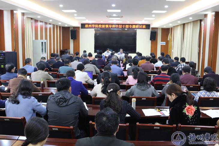 3月27-28日,学校举办校级领导和中层干部专题研讨班, 深入学习贯彻习近平新时代中国特色社会主义思想和中央、自治区、梧州市领导干部专题研讨班精神, 动员全校上下进一步解放思想、改革创新、扩大开放、担当实干,坚持底线思维, 推进特色鲜明的应用型高水平大学建设。 学校领导唐平秋、杨奔、玉振明、邱房贵、梁业华、麻新纯、甘金明,全体中层领导干部参加研讨班。