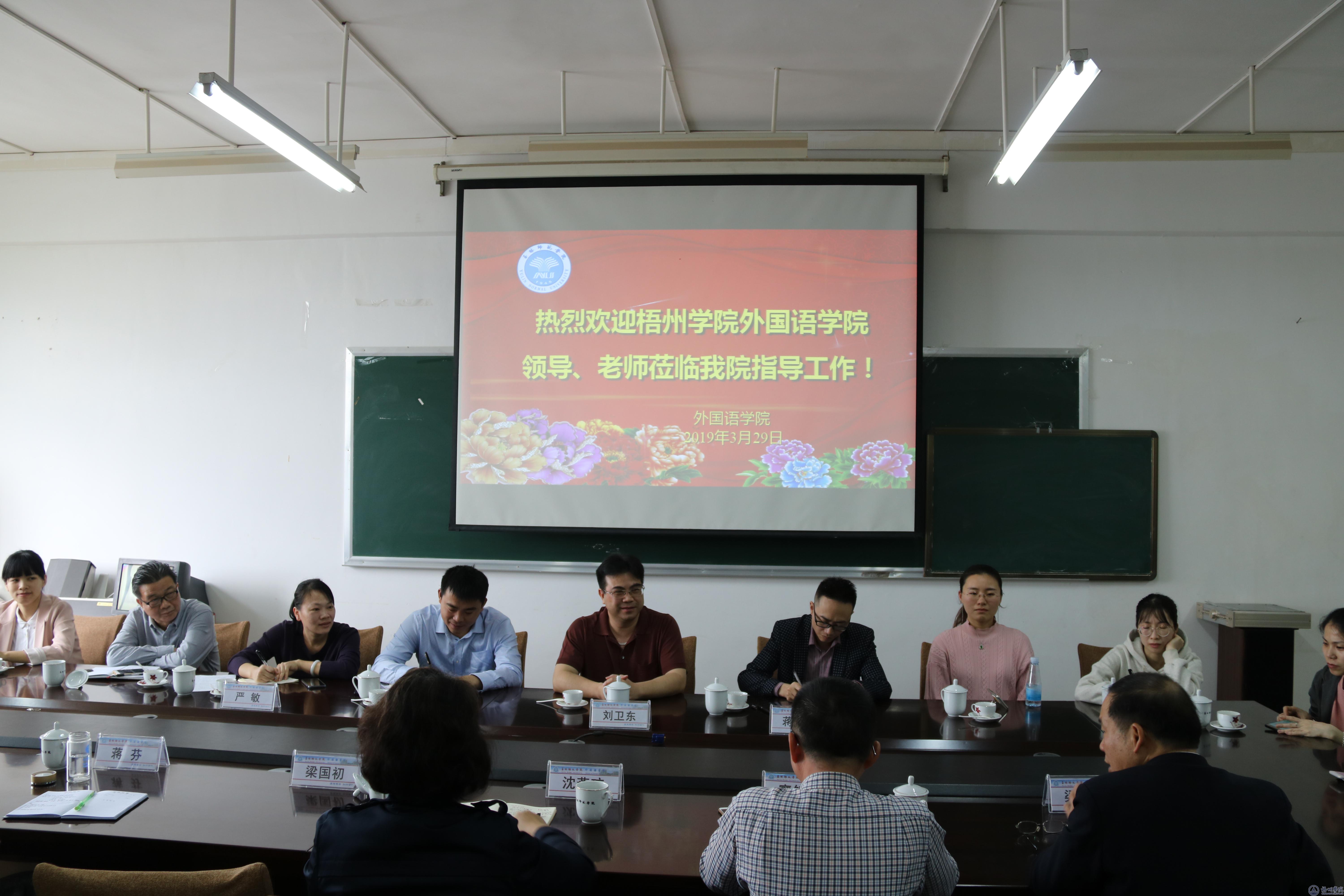 3月29日,外国语学院院长刘卫东一行赴玉林师范学院外国语学院考察交流,学习该学院本科教学审核评估经验与方法。在两院交流座谈会上,玉林师范学院外国语学院领导班子分别就参与具体组织实施迎评工作的体会、支撑材料整理和专家进校评估的等方面详细介绍了本学院的具体做法。