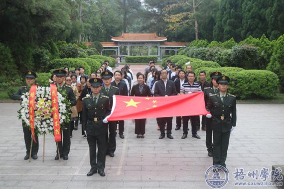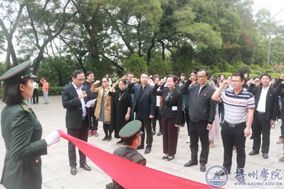 4月3日上午,我校在梧州市革命烈士纪念碑,开展以“缅怀革命先烈,坚定理想信念”为主题的清明扫墓活动。校党委副书记曹迎参加活动。