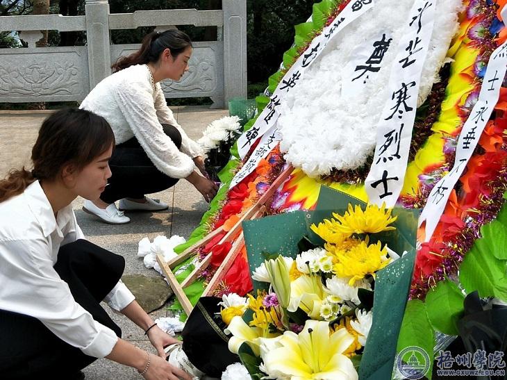 清明节前夕,外国语学院党总支组织学生党员、团委学生会成员以及各班学生代表共60余人开展清明祭扫革命烈士碑活动。 在梧州市革命烈士碑前,全体党员和学生班级代表们严肃默哀、并为献上小白花。革命烈士为中国解放事业而不惜牺牲的民族精神和伟大业绩,让党员们和班级代表们深受感动。 [图:辛莹 文:梁东梅]