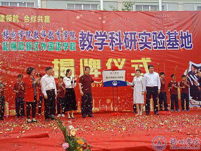 4月18日下午,教师教育学院校外教学科研实习基地签约仪式在梧州高新区外国语学校举行。 教师教育学院领导班子、高新区党委领导以及外国语学校相关负责人出席了仪式。