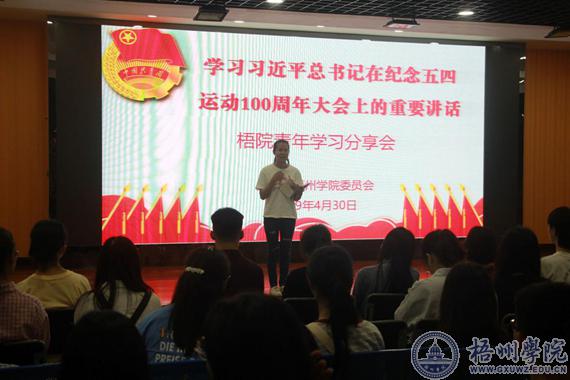 大会直播结束后,共青团梧州学院委员会立即召开了梧院青年分享会,学习习近平总书记在纪念大会上的重要讲话精神。老师和同学们对纪念五四运动100周年大会的内容进行了积极学习和热烈讨论,并分享心得体会。