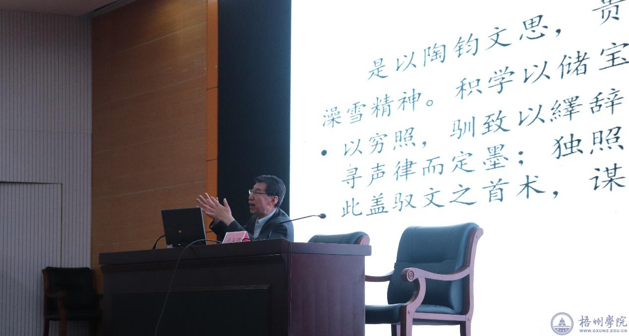 卢永璘教授对《文心雕龙》的文论创作历程、作品作者刘勰以及作品的重要地位和研究价值作了阐述和介绍。他强调《文心雕龙》在文学、美学和传统文化中的重要地位,对教育也有重要作用,引起国内外学术界研究热。《文心雕龙》是中国历史上了不起的文学著作。