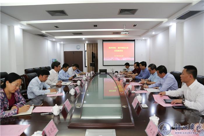 南宁师范大学党委书记李丰生会见了杨奔一行;南宁师范大学校长李传起校长介绍了该校的办学情况以及推进现代大学治理体系建设、本科教学工作审核评估、人事制度改革、新校区建设等方面的经验和做法。杨奔表示,南宁师范大学近年来发展很快,多方面工作的经验和做法这得我校学习和借鉴,此行将进一步加强两校的合作交流,推动我校工作上新水平。