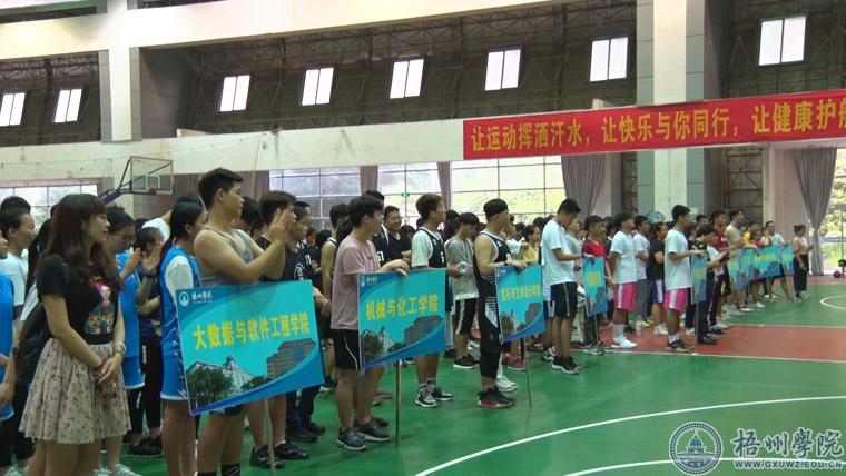 校长杨奔宣布梧州学院2019年体育文化节开幕,并为篮球赛揭幕赛跳球抛球。