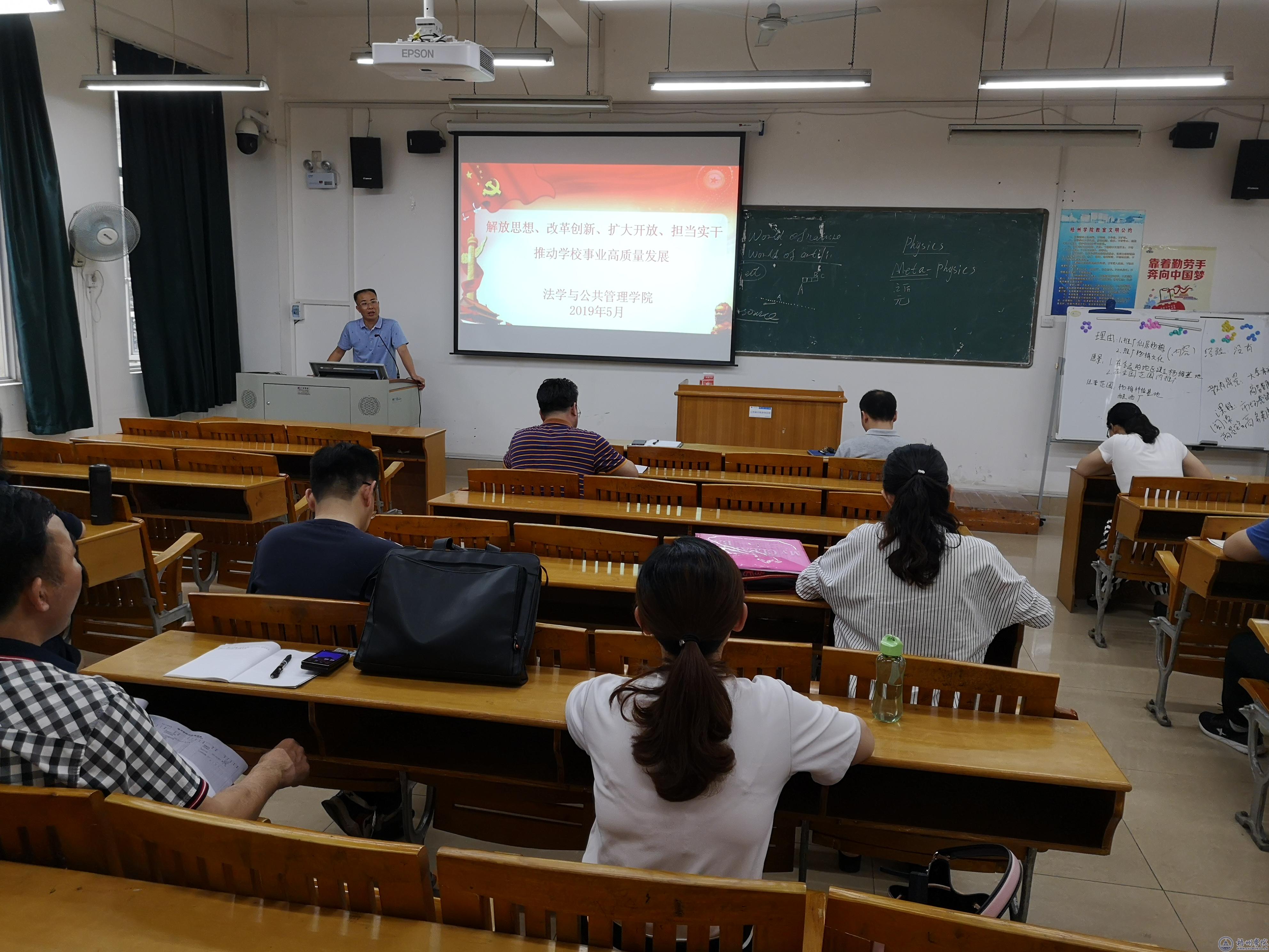 根据学校党委文件要求,法管学院于5月15日下午在M-202教室召开“解放思想,改革创新、扩大开放、担当实干,推动学校事业高质量发展”专题学习会,学院全体党员、干部参加了本次会议。