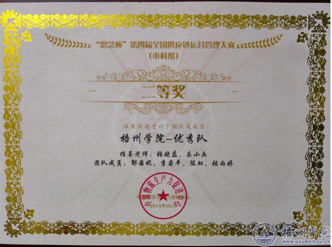 本届大赛以“对接行业、提升教学、服务企业”为原则,为在校师生和企业建立一个交流、合作的平台,实现竞赛过程与企业供应链运营流程对接,促进工学结合人才培养模式改革与创新,引领教育教学改革的方向。全国共有200多所本科院校3000多名学生组队参加大赛,经过练习赛、积分赛角逐,商学院张晓磊、乐小兵两位老师指导的2016级物流管理本科班学生郭茜妮,李菊平,陈虹,张雨婷组建的“优秀队”在荣获全国二等奖,总积分排名全国第5名。