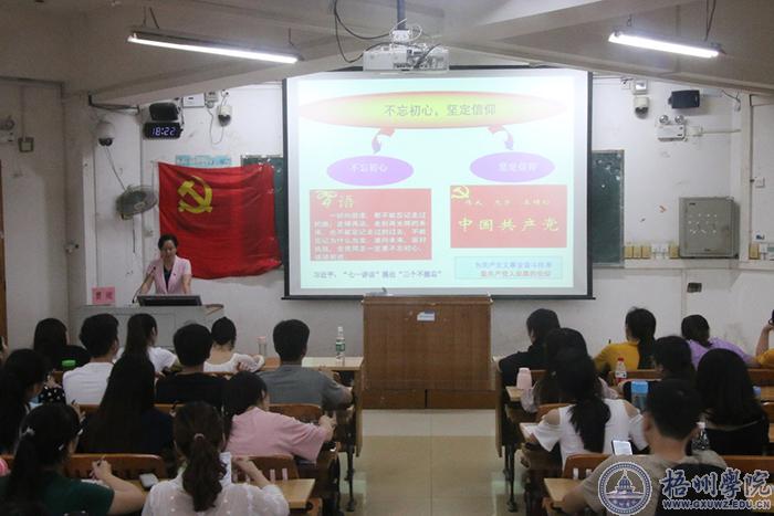 在专题讲解课上,学校党委副书记曹迎带领学员回顾了党的一大到十九大的会议情况,详细解读了《中国共产党章程》的主要内容,强调学习党章要内化于心,外化于行,坚持做到学用结合,知行合一,学深学透,常学常新。教师教育学院党委书记梁文忠、副书记罗吉娟,机关党委专职组织员毛廷贵等为培训班学员专题授课。学员们培训期间还观看了优秀影片《建党伟业》,进行了集中学习讨论。