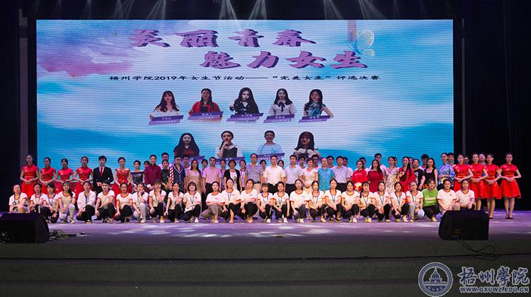5月19日晚,由校团委主办、商学院团委承办、各二级学院团委协办的梧州学院2019年“美丽青春 魅力女生”女生节活动---完美女生评选决赛在梧州学院体育馆三楼举行。