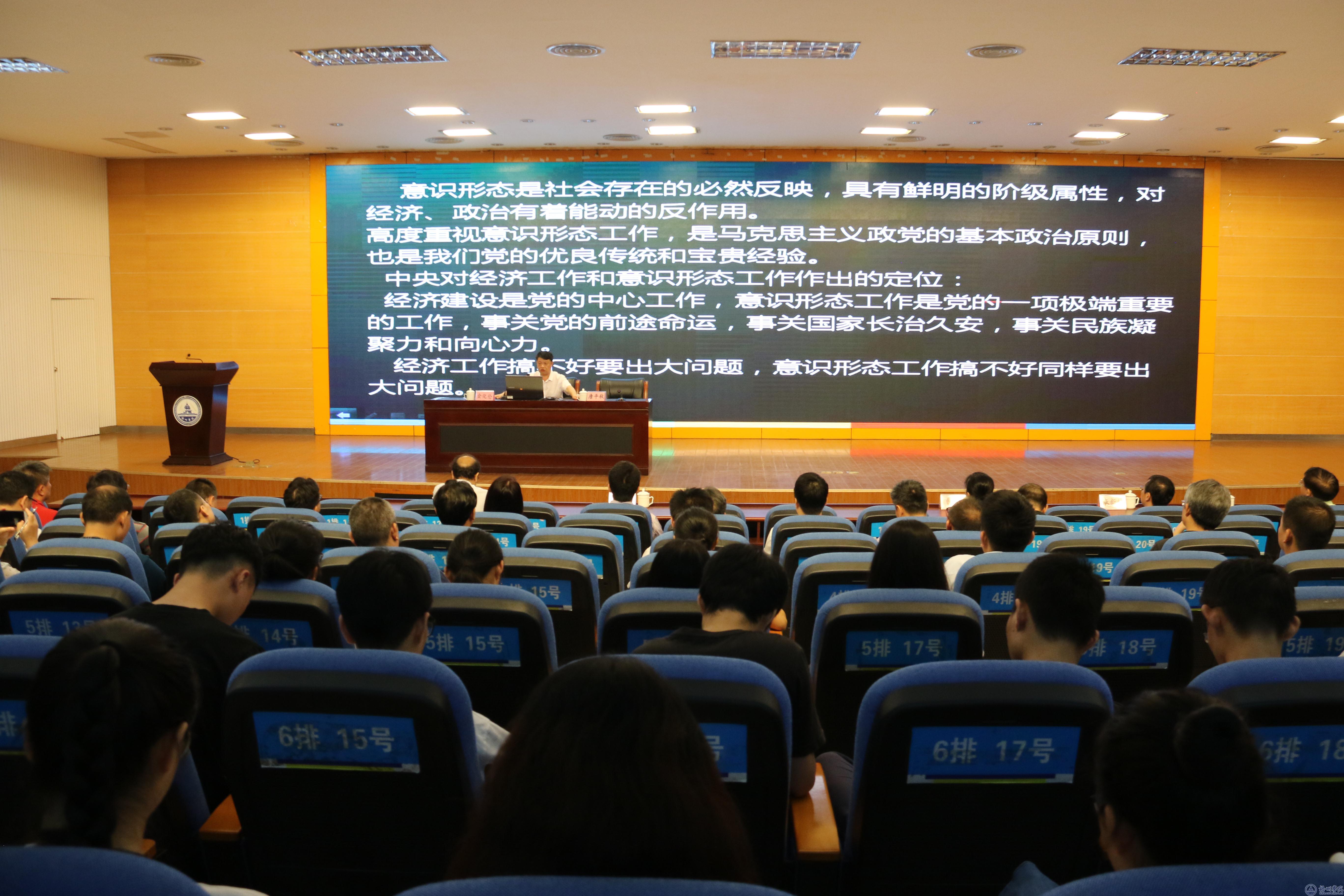 金化伦主任受邀为我校师生作题为《切实维护网络意识形态安全》的专题报告。报告会由党委书记唐平秋主持。师生代表300多人聆听报告。