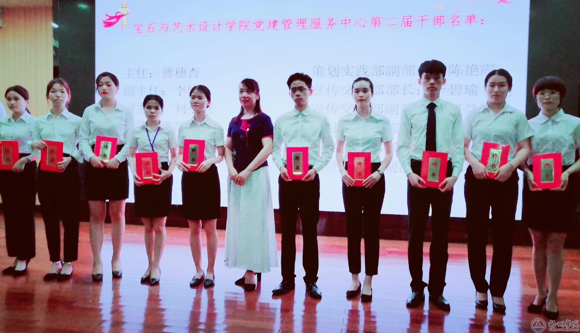 5月29日下午,宝石与艺术设计学院党建服务中心在体育馆负一楼路演大厅召开换届选举暨2018-2019年工作总结大会。会议由党建服务中心副主任刘小楷主持,学院党委书记钟海明、副书记黄石莲、专职组织员许丽娟及学院全体党建服务中心干部、兄弟学院党建服务中心代表、学院各班级代表参加了会议。