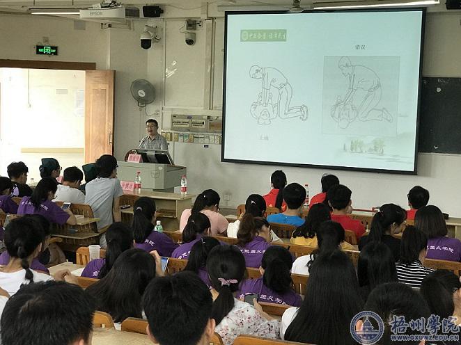 为了增强我院大学生安全防范意识和应对突发事件的处理能力, 5月31日,马克思主义学院联合梧州市中西医结合医院开展急救知识及实操技能培训。梧州市中西医结合医院急诊科主任陈俊仲,急诊科徐建冰护长,黄秋燕护师给17哲学班,18哲学班,法管学院18公管班,18行管班,18法学2班全体同学作了培训。