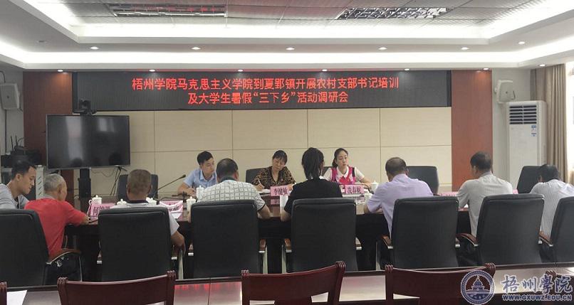 6月18日下午,马克思主义学院教工党支部李健敏等一行三人到夏郢镇就农村支部书记培训内容及马克思主义学院学生暑期“三下乡”活动开展调研,夏郢镇党委组织委员王玉磊等相关负责人陪同。