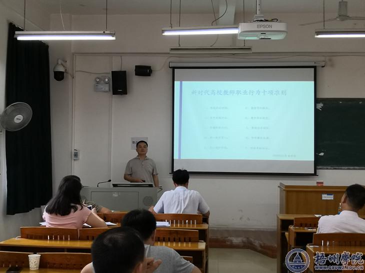 党总支书记邹木春带领全体教职工深入学习了“三个牢固树立、四有好老师、四个引路人、四个相统一”等习近平总书记关于师德师风建设的重要论述精神,并学习了《新时代高校教师职业行为十大准则》,传达了学校师德师风建设的有关文件精神,要求每个教职工自觉践行立德树人根本任务,争当“四有好老师”。