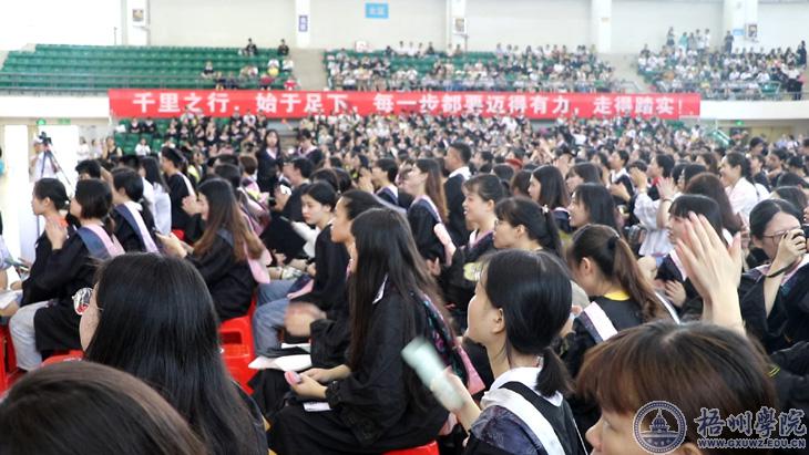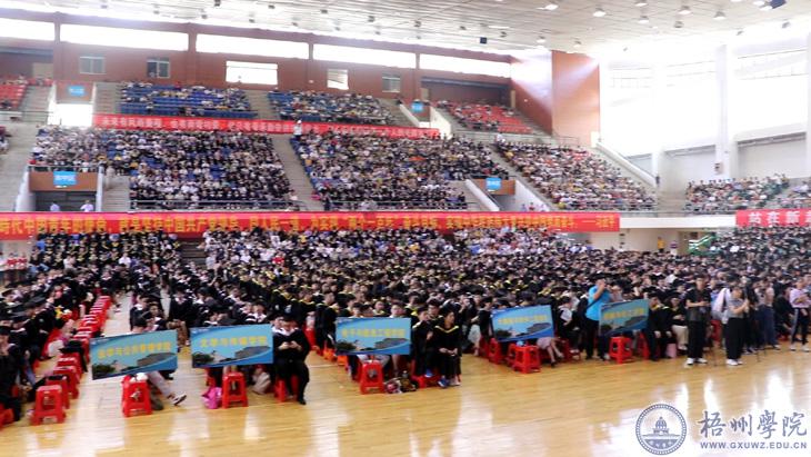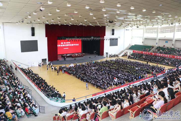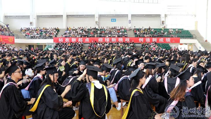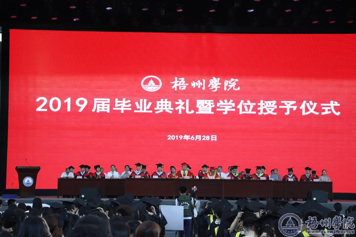 6月28日上午,梧州学院2019届毕业典礼暨学位授予仪式在体育馆三楼隆重举行。2019届毕业生齐聚在此,参加自己大学生涯中最隆重的庆典仪式——毕业典礼。