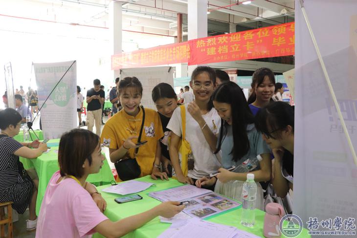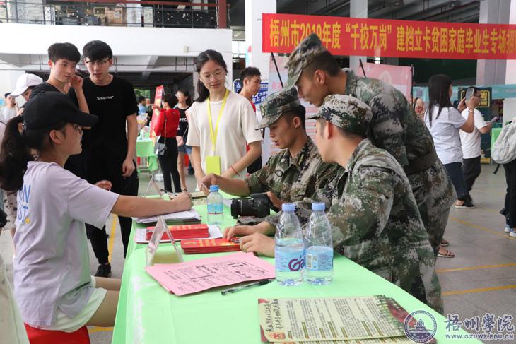 在招聘会现场还设置了征兵宣传点,由梧州市万秀区武装部派驻工作人员,对大学生应征入伍政策及相关提供政策宣传和咨询。