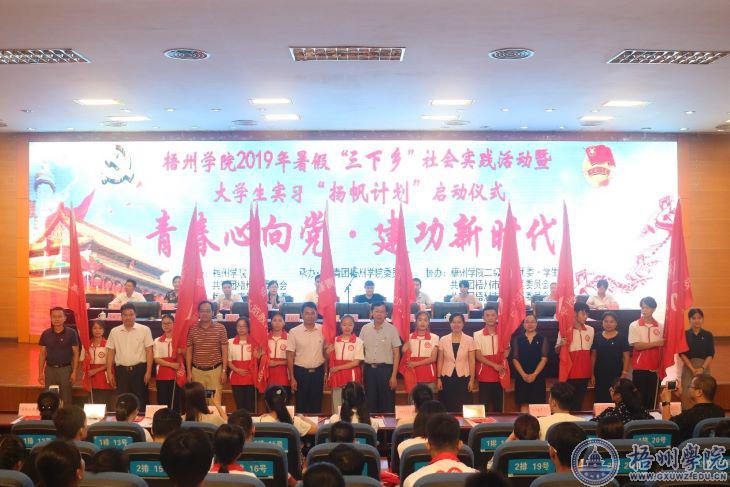 7月1日下午,我校在明理楼学术报告厅举行以“青春心向党 建功新时代”为主题的2019年暑期“三下乡”社会实践活动暨大学生实习“扬帆计划”启动仪式。校党委书记唐平秋出席启动仪式并宣布活动正式启动。校党委副书记曹迎做讲话,鼓励青年学生将个人成长与国家需要相结合,在志愿服务中增长才干,为夺取新时代中国特色社会主义伟大胜利汇聚青春力量。